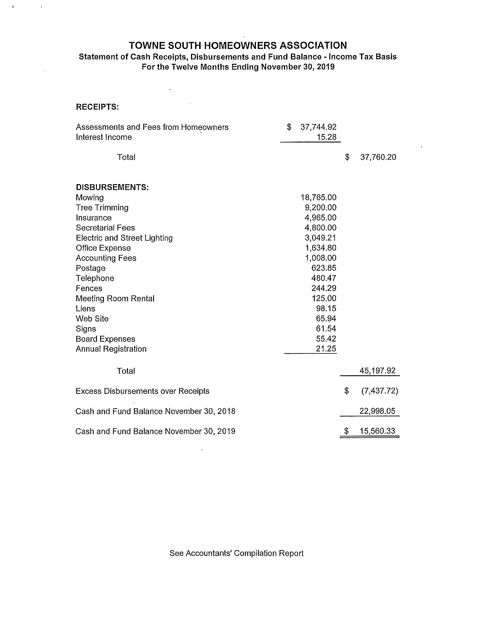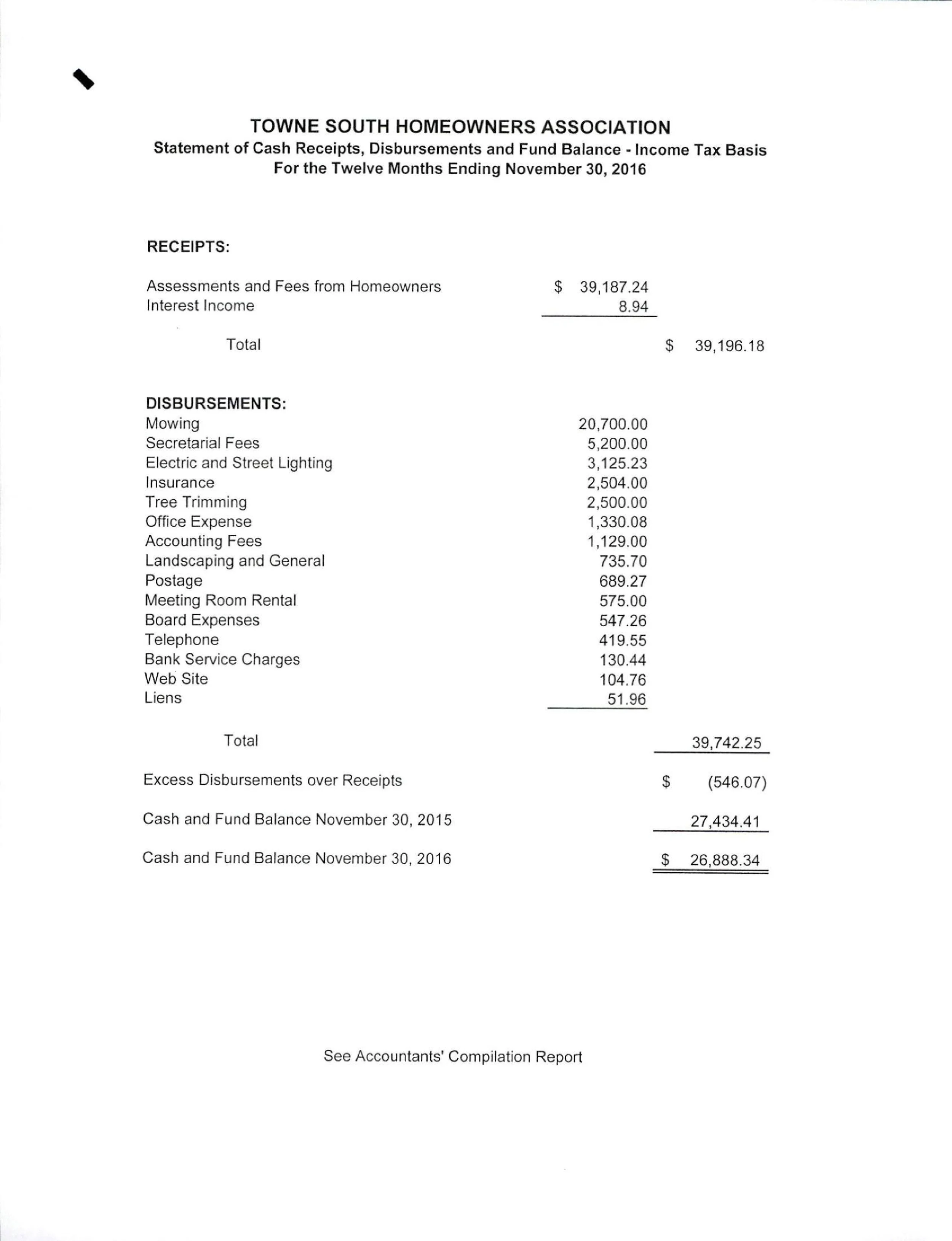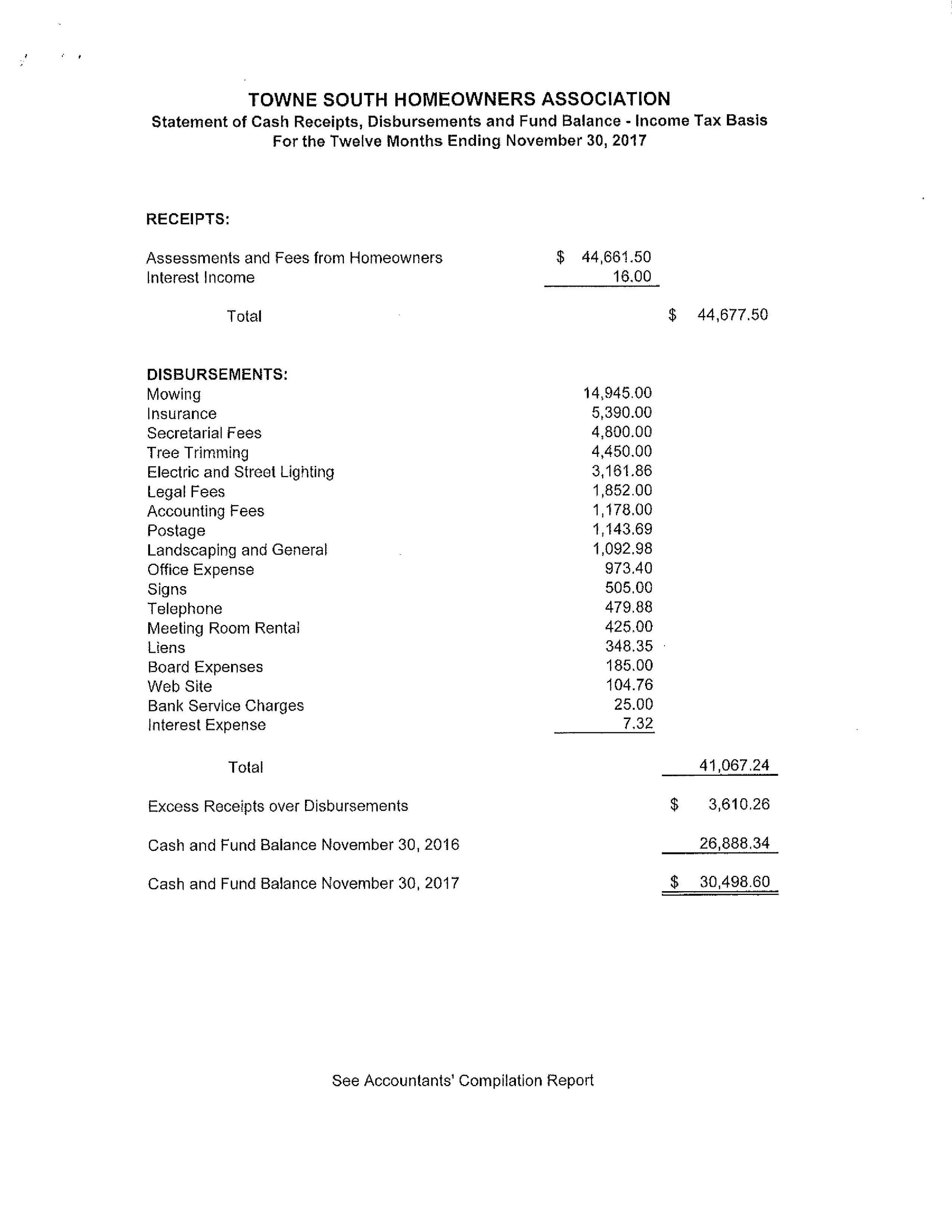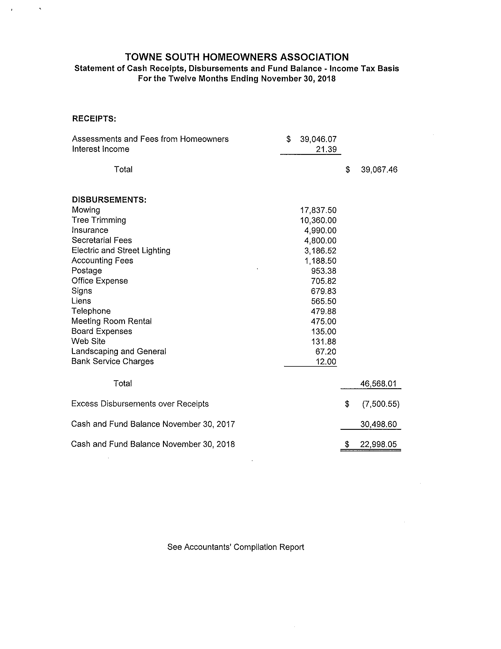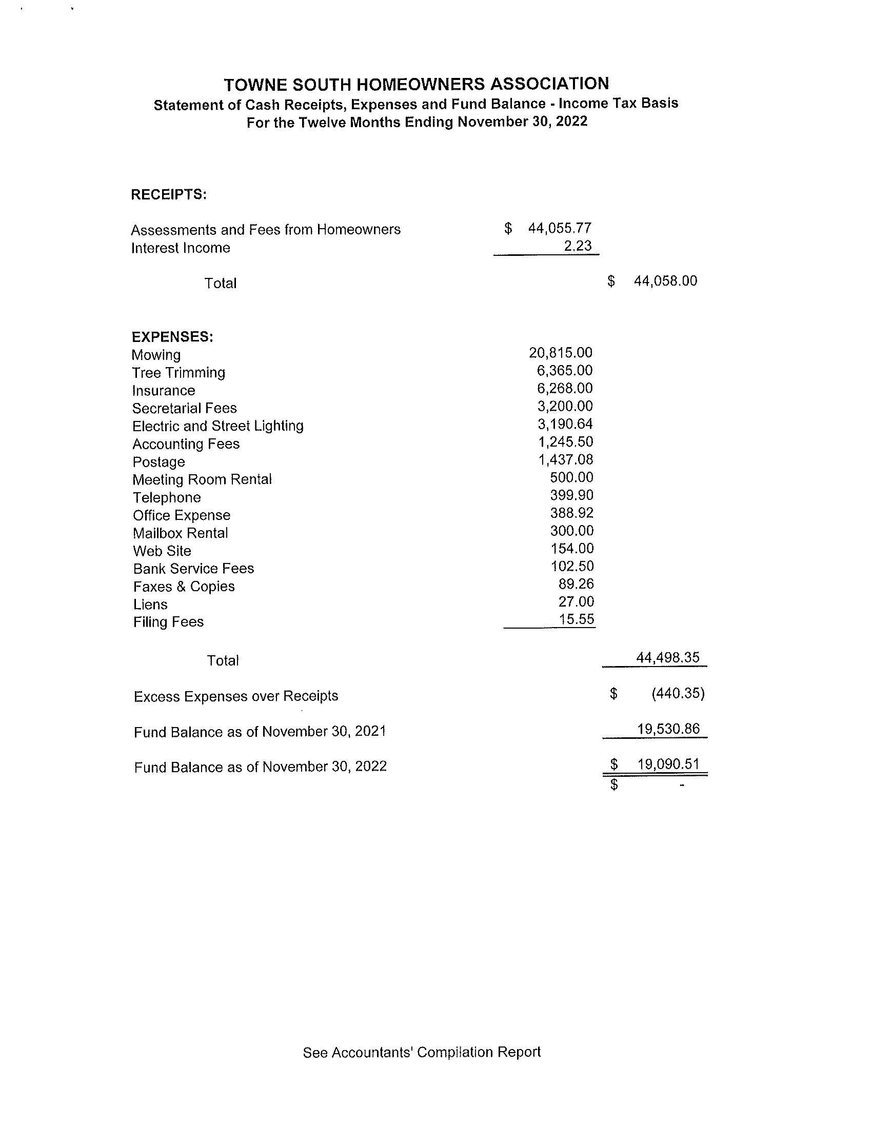 Towne South Homeowners’ Assoc. Financials at a Glance 2018-2022