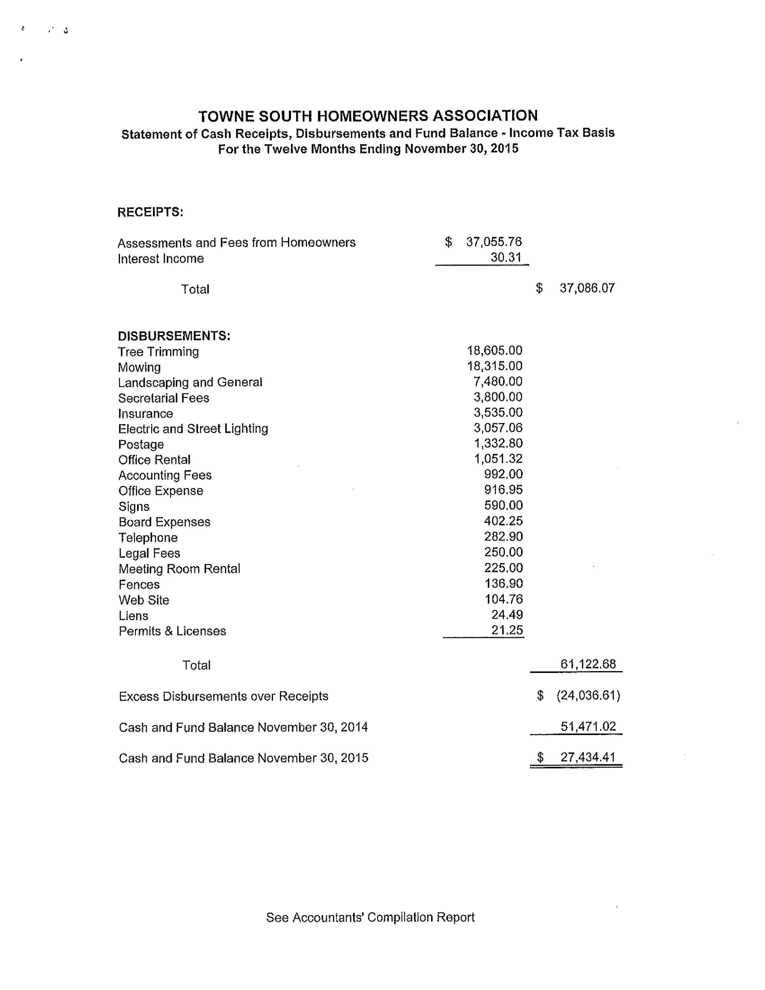 Profit & Loss Reports for Towne South Homeowners Association 2022-2024